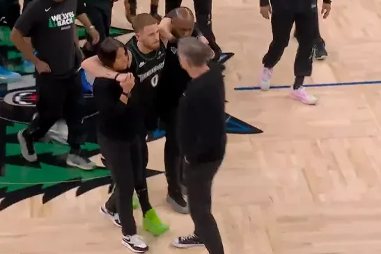 第一节比赛中,森林狼开局5-0领先掘金,迪温琴佐无对抗受伤直接走回更衣室。