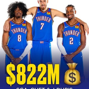 雷霆队在2025年夏天以总计8.22亿美元的天价续约亚历山大、杰伦-威廉姆斯和霍姆格伦,这一数字放在10年前,也就是20...